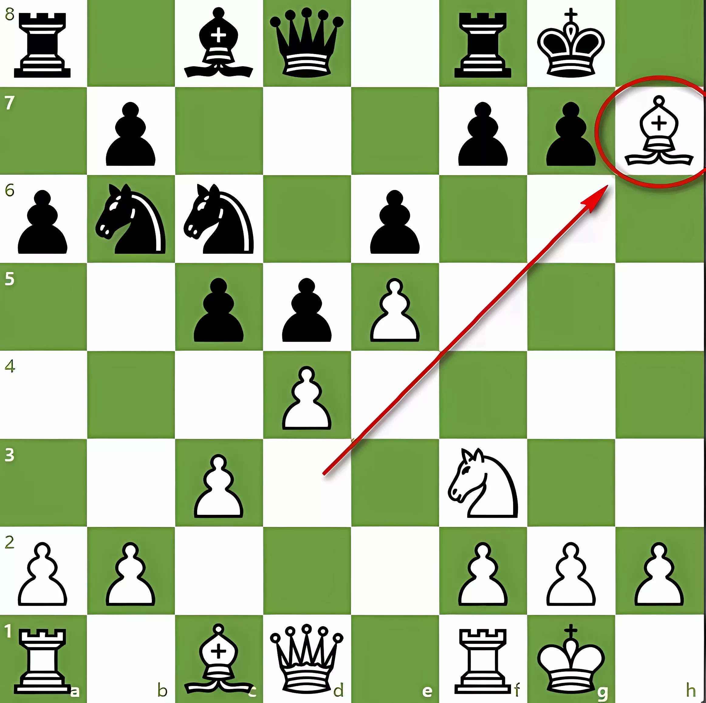 - Die Läufer des Angreifers zeigen auf g7 und h7.
