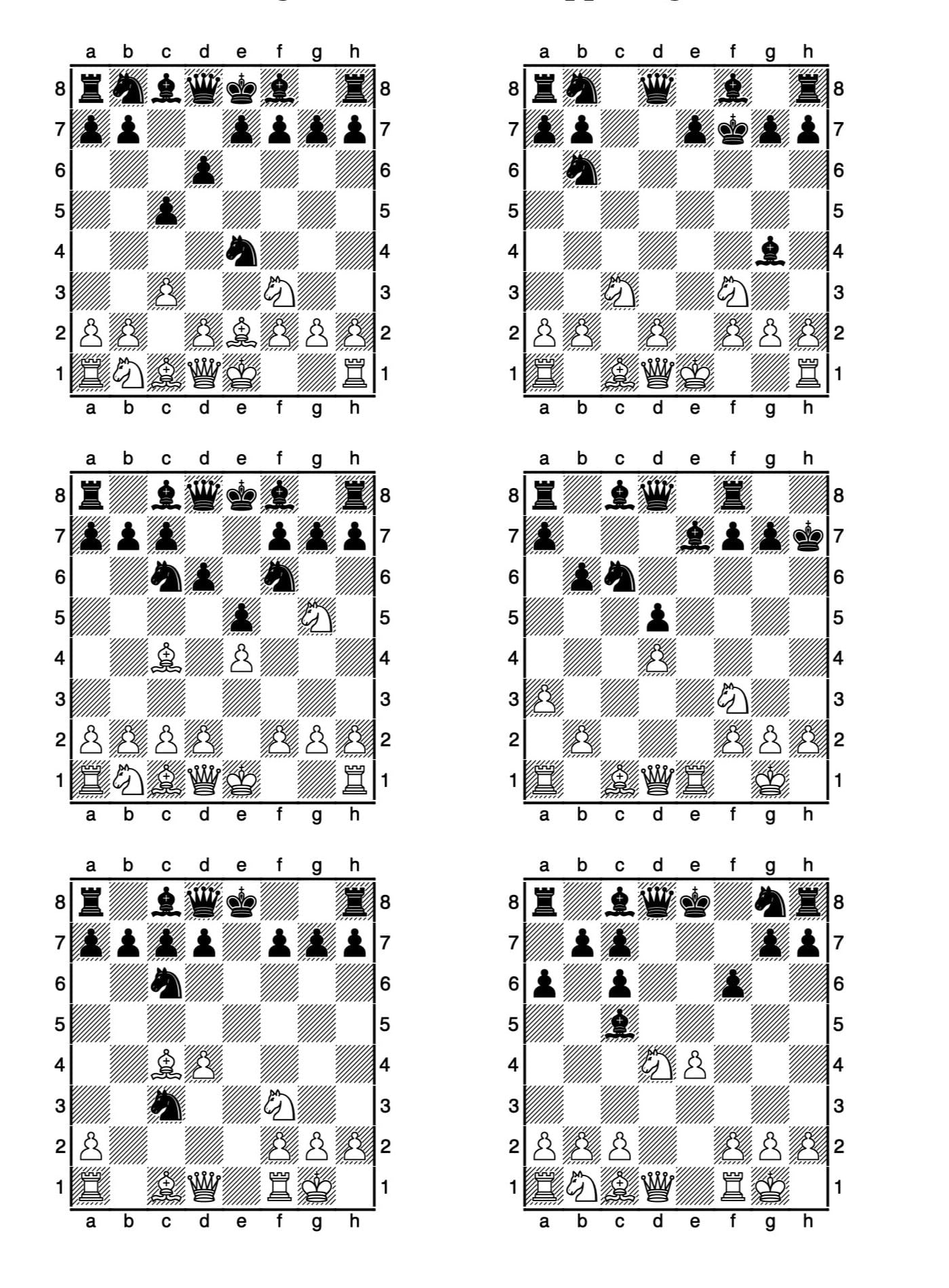 - Linienräumung (Clearance): Ein Feld oder eine Diagonale wird für eine eigene, stärkere Figur freigemacht.